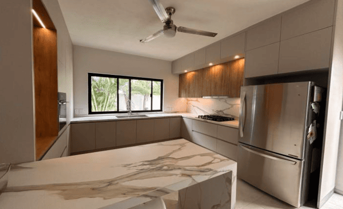 El equipo de aquí tu remodelación me ayudó a transformar mi cocina. La calidad de los materiales y el diseño son excepcionales. ¡Estoy muy satisfecha con el resultado!